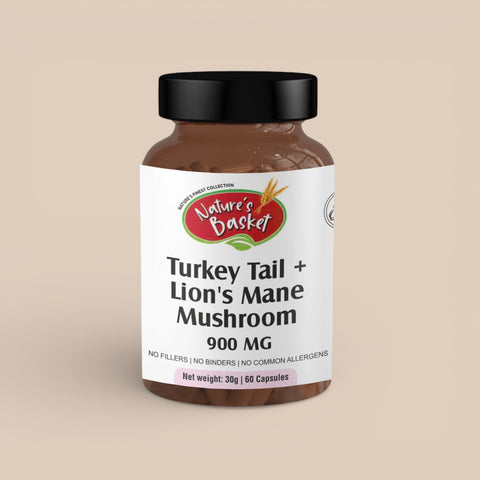 Turkey Tail + Lion’s Mane Mushroom Capsules – 450mg | 60 Caps | Natures Basket